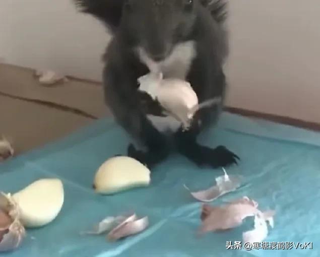 男子开了一家拉面馆每天需要大量蒜瓣,自从他投喂了一只小松鼠后,这只小松鼠每天吃饱喝足就帮他剥蒜。小松鼠嘴爪并用,剥的又快又干净,每天至少能剥四五斤,足够男子用了。