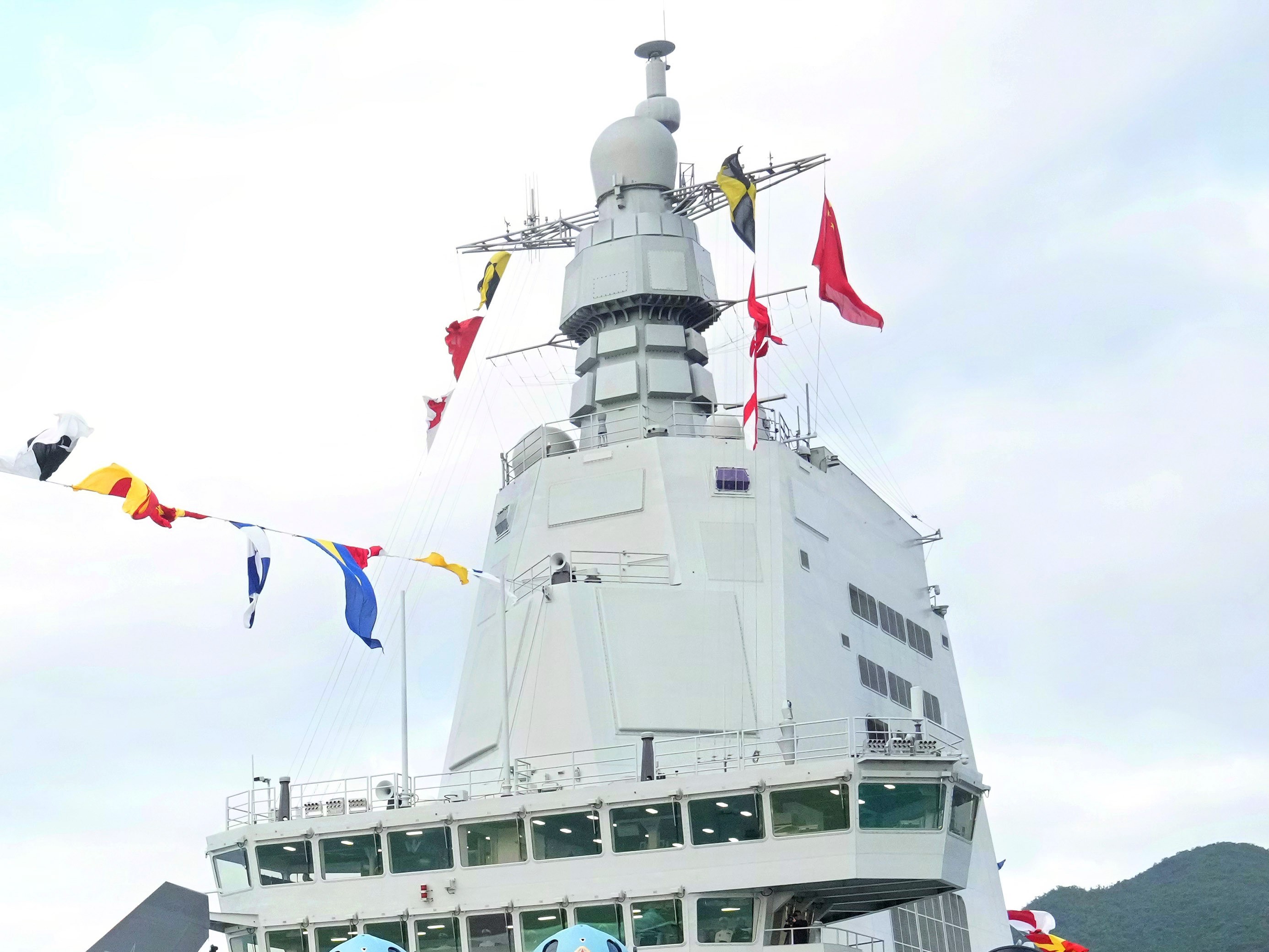 图4,“福建舰”举行服役仪式期间,涂黑的舰岛又给恢复了,可能是觉得之前涂黑有点丑。