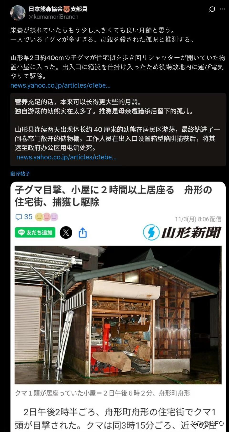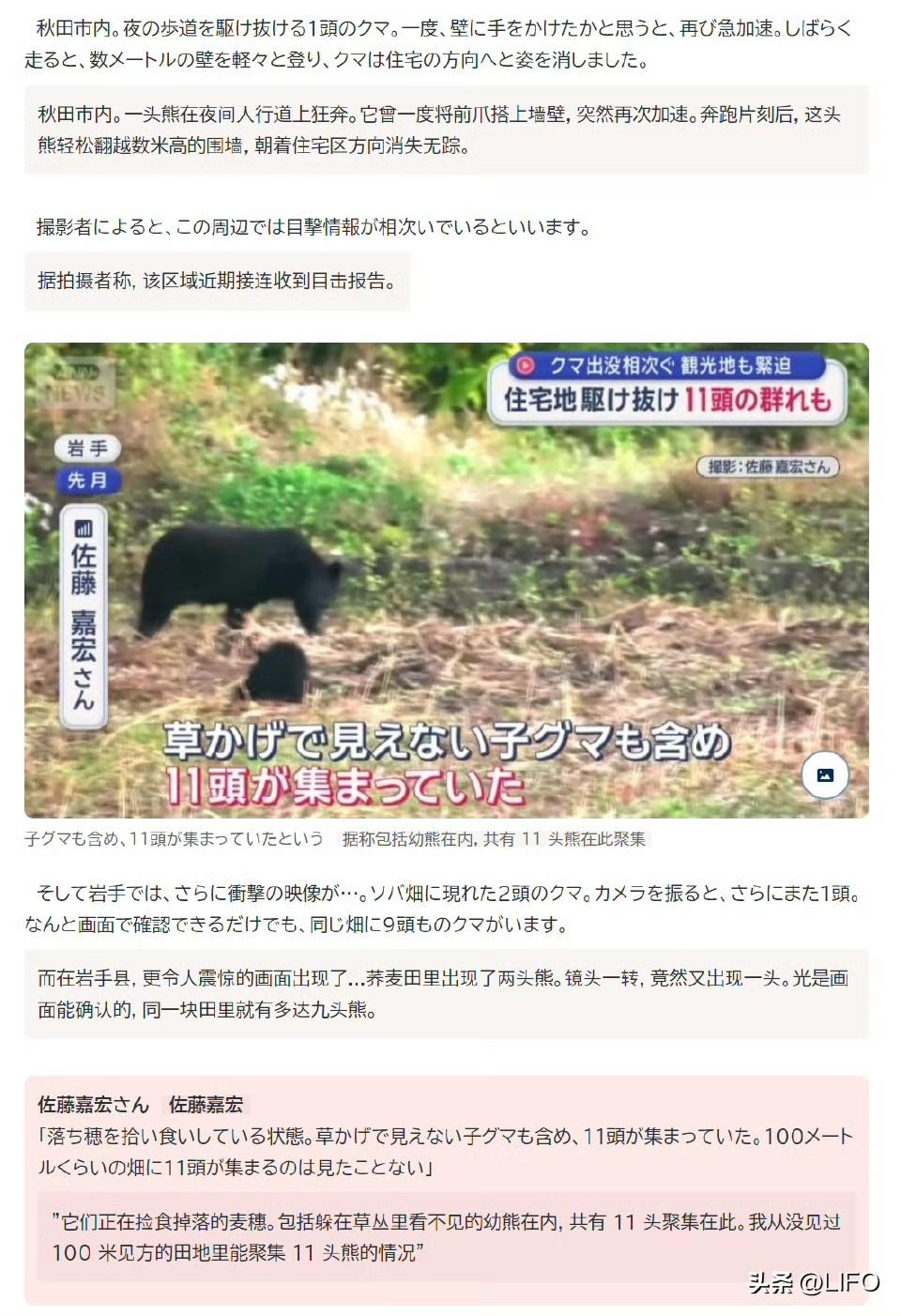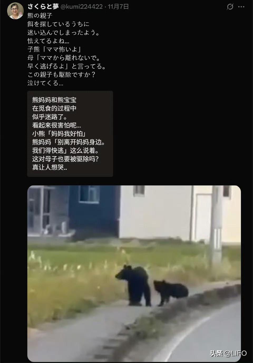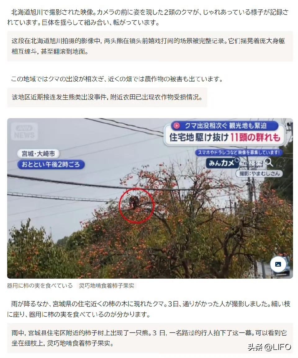 日媒:岩手县100平方米见方的农田里刷新了11只熊。雨中,宫城县住宅区附近的柿子树上刷出了一只熊。日本动保:“熊只想在富饶的山林中平静地生活”、“熊熊这么可爱为什么要杀熊熊”