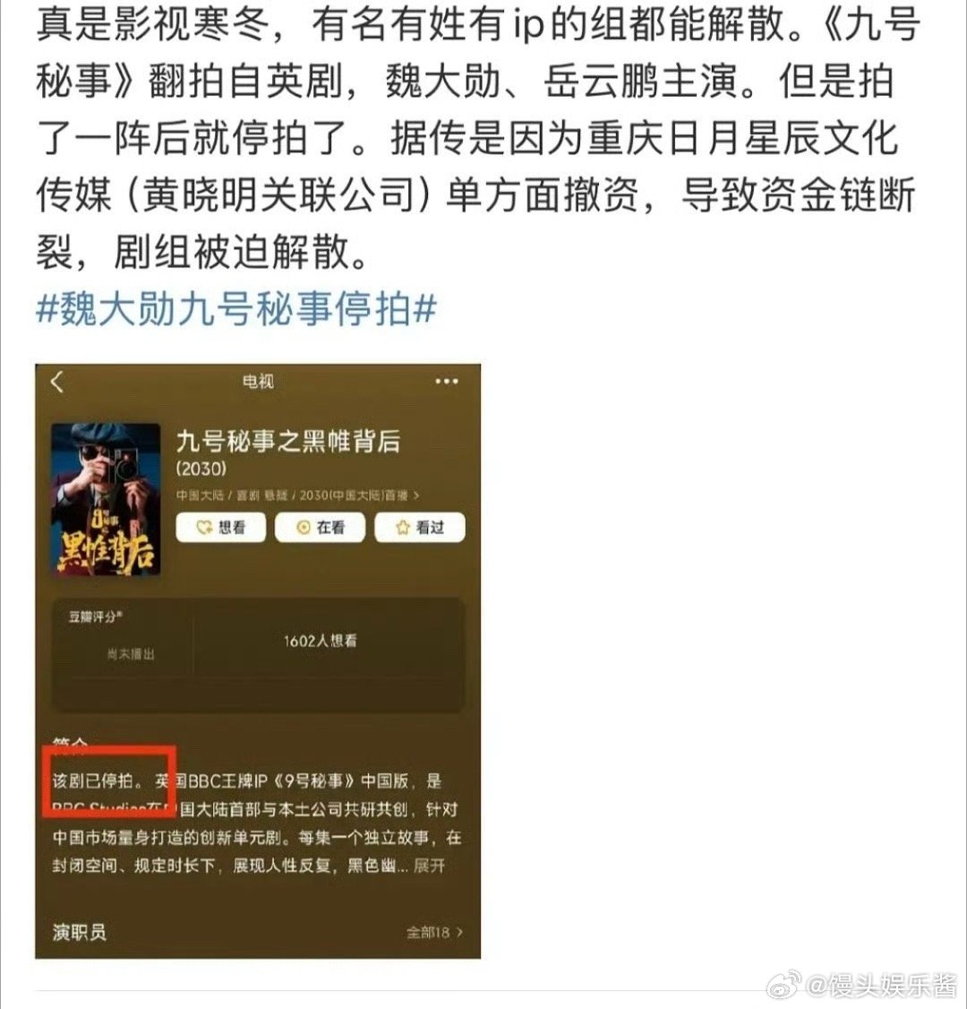 《起落安妥》《江山为聘》《风月不相关》《九号秘事》怎么都停拍了[哆啦A梦吃惊]