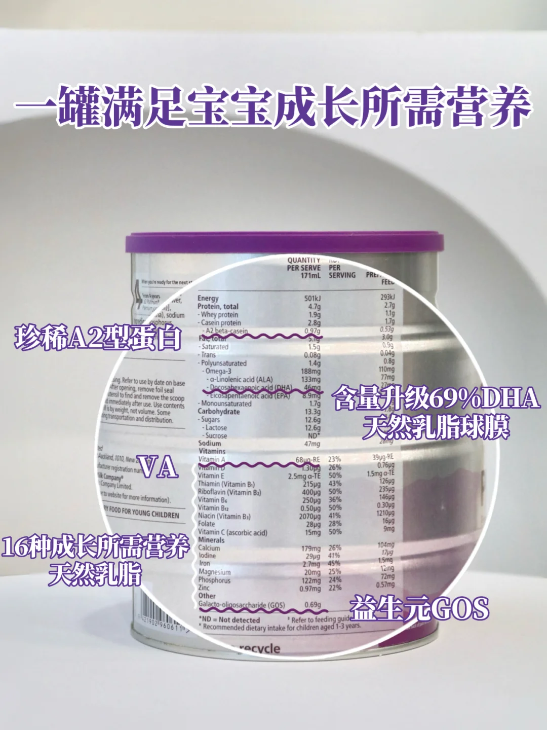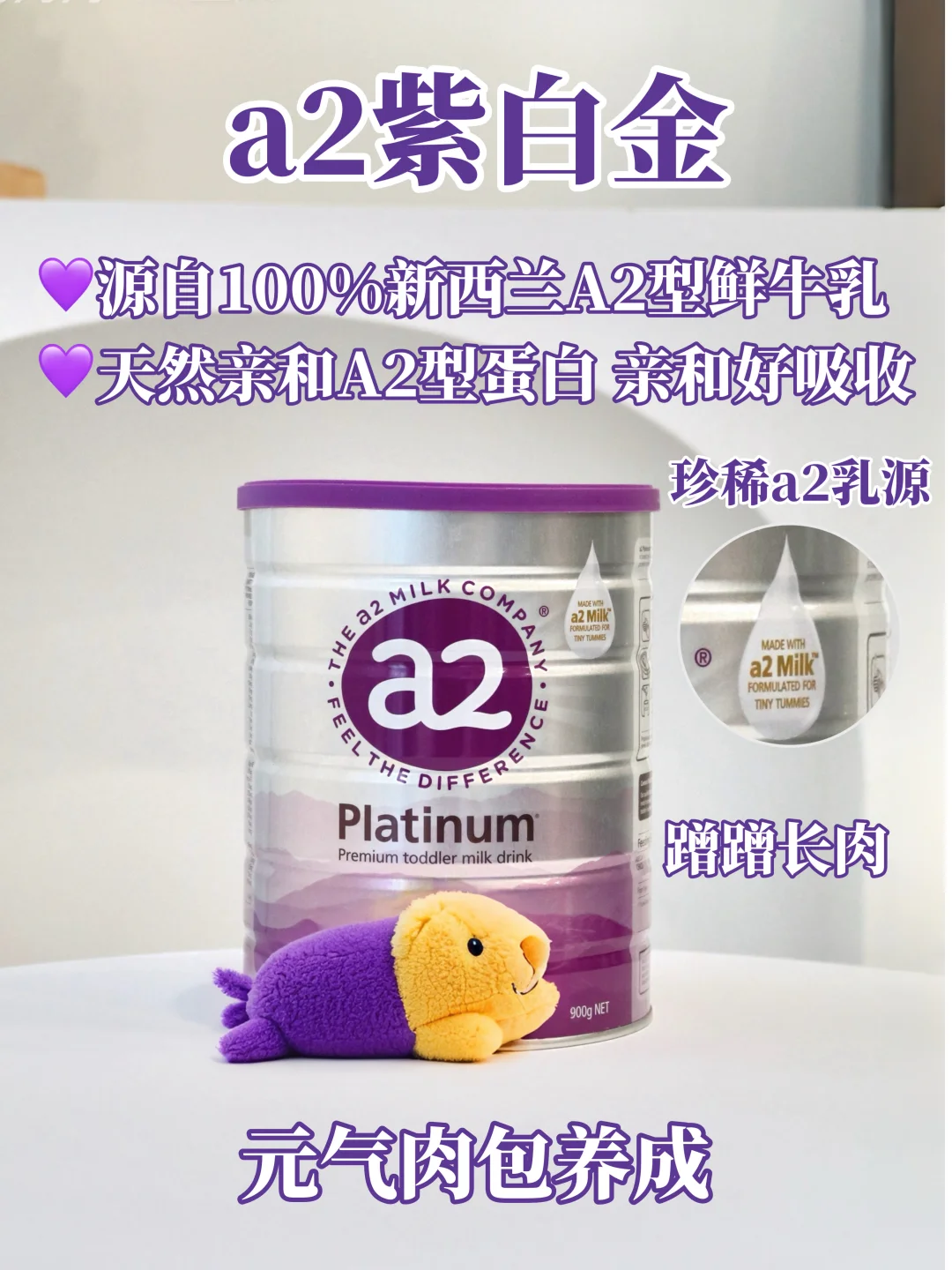 😍能让我死心塌地囤货,a2 紫白金的硬实力真的没话说!🌟先说王牌核心a2源乳,奶源是 100% 新西兰黄金奶源带的A2 型鲜牛乳,奶牛都是精挑细选的A2型基因奶牛,产出的就是100%的 A2 型蛋白,👏和妈妈亲喂的蛋白类型是同款,宝宝从小就认识,自然亲和度超高,特别贴合宝宝娇嫩肚肚,吸收起来就毫无负担啦~ 而且 a2 品牌专攻 A2 型蛋白研究 20 多年,品质这块真的让人放心到骨子里。