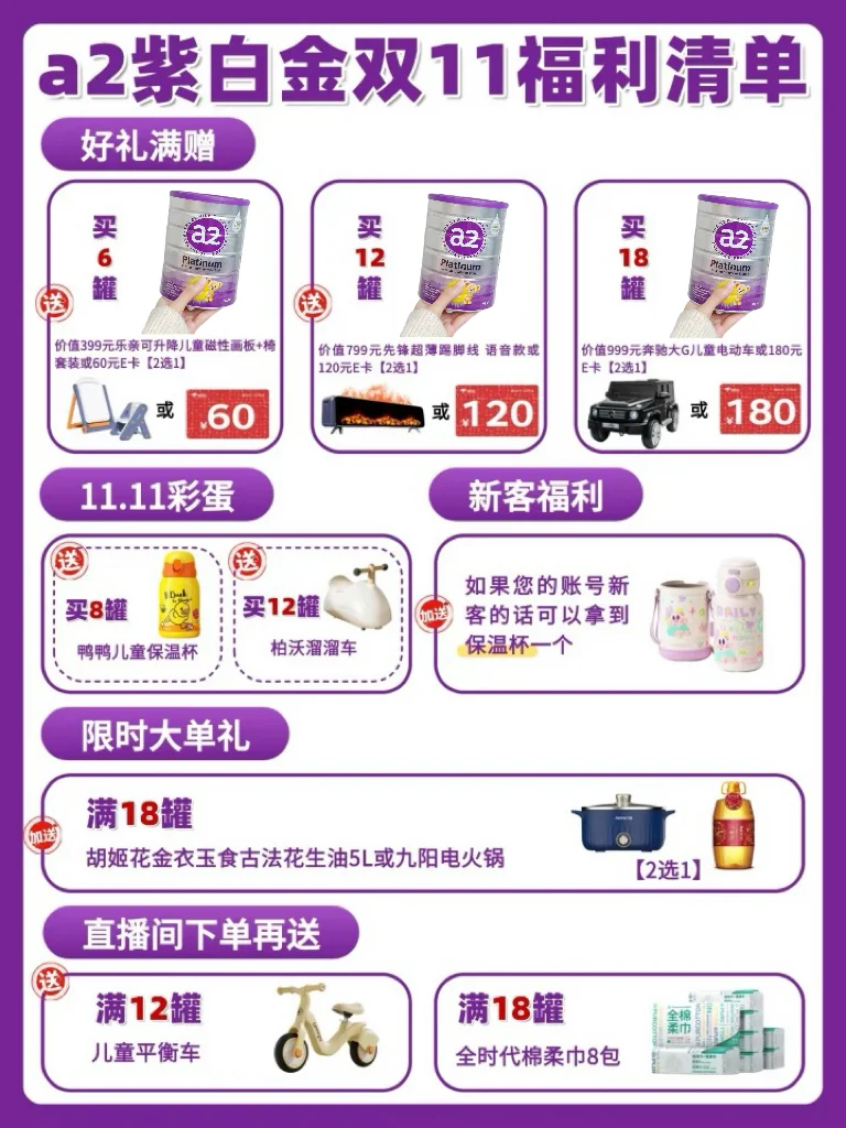🙋♀️姐妹们,a2紫白金这次的攻略都帮你们研究透了!闹钟定好,购物车加满,趁着双十一,把娃半年的口粮一步囤到位,价格诱人不说,👍还把心心念念的大G电动车直接送到手,里外里一算,感觉自己简直赚翻了!