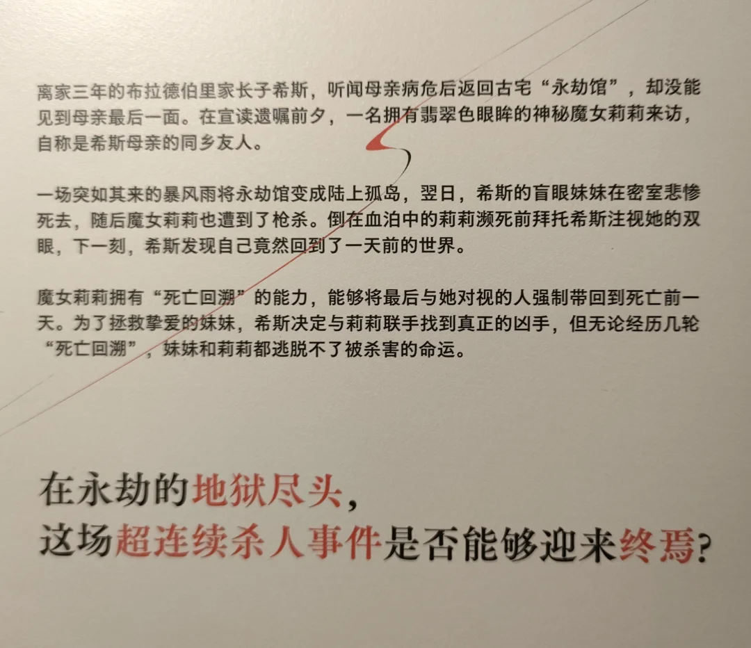 收到母亲病危的噩耗,布拉德伯里家长子希斯匆匆赶回祖宅——永劫馆,却为时已晚。