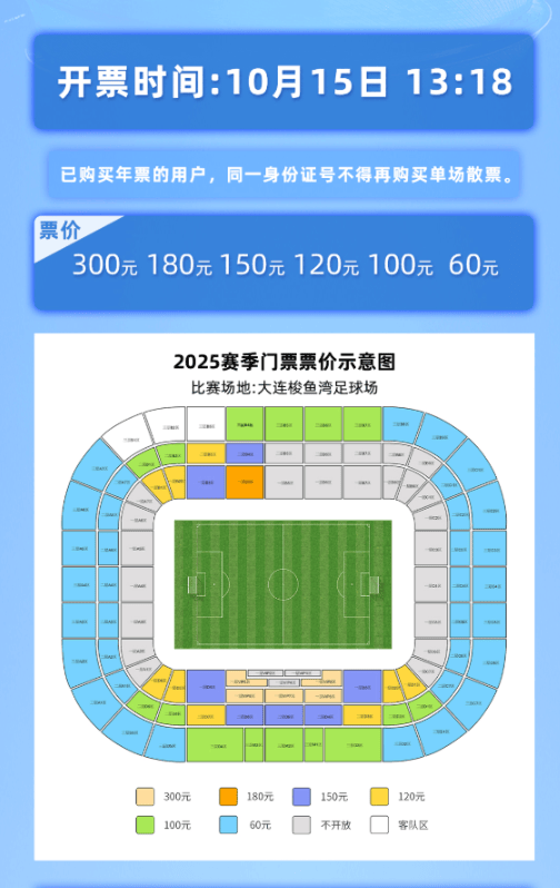虎扑11月10日讯大连英博官方公布了本赛季主场收官战对阵上海海港的开票时间:10月15日下午13:18分。