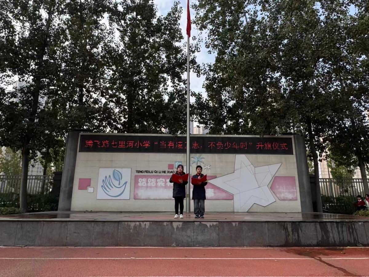 为进一步激励全体同学树立远大理想,珍惜宝贵时光,11月10日上午,郑州市管城回族区腾飞路七里河小学举行了“当有凌云志,不负少年时”主题升旗仪式。