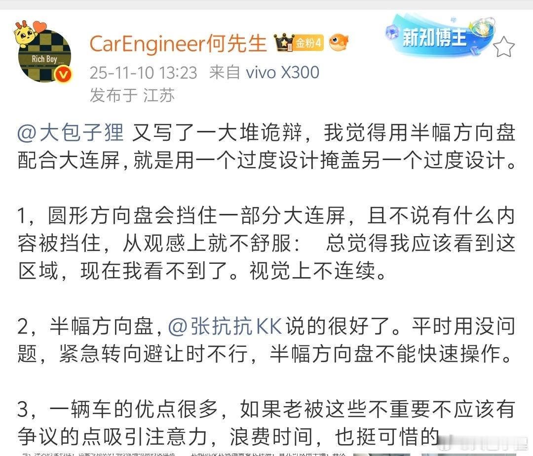 智己这个车机争议,逐渐转化成方向盘争议,很有趣的是: