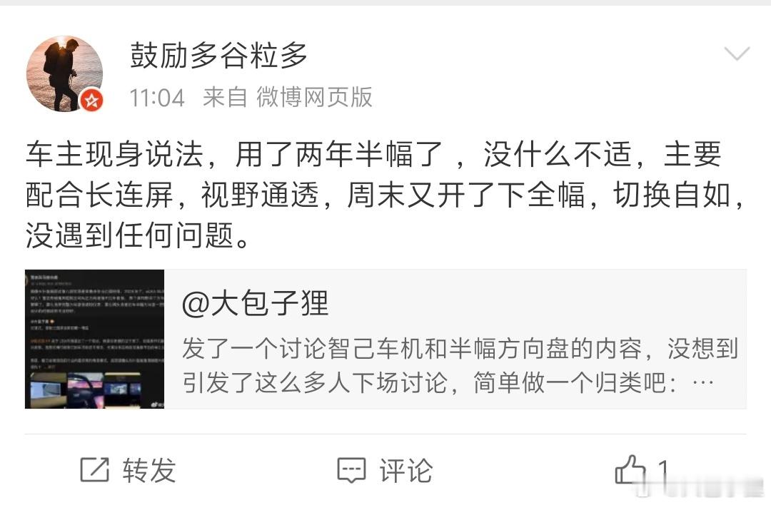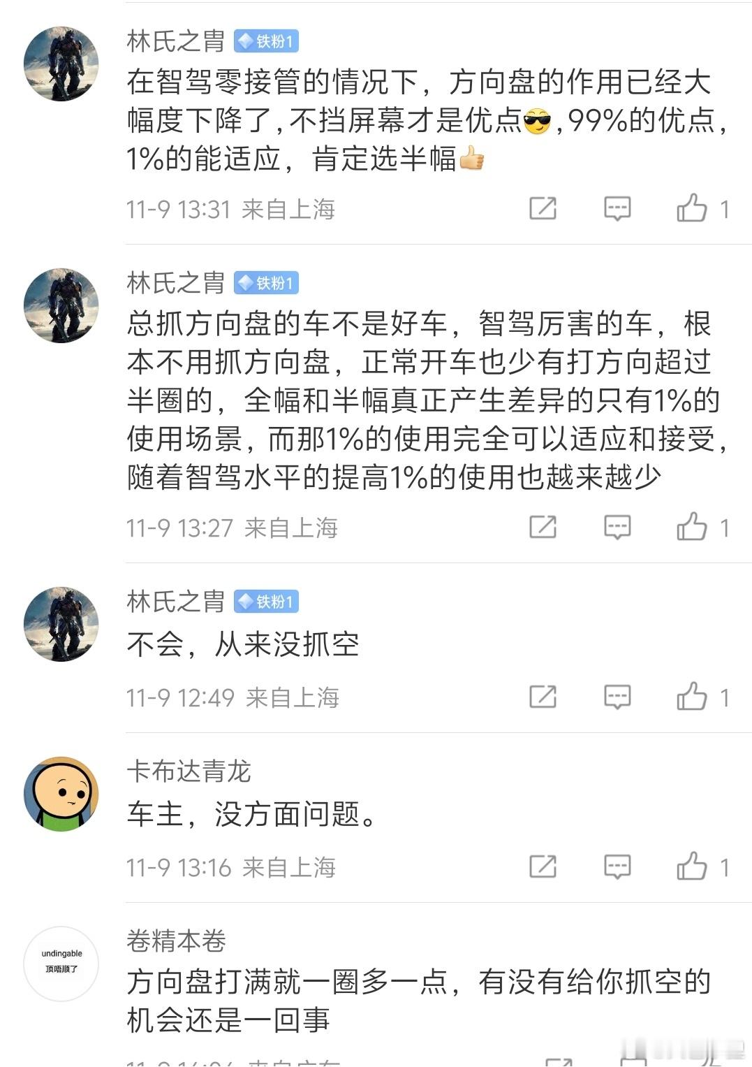 智己这个车机争议,逐渐转化成方向盘争议,很有趣的是:车主们大多都觉得半幅方向盘挺