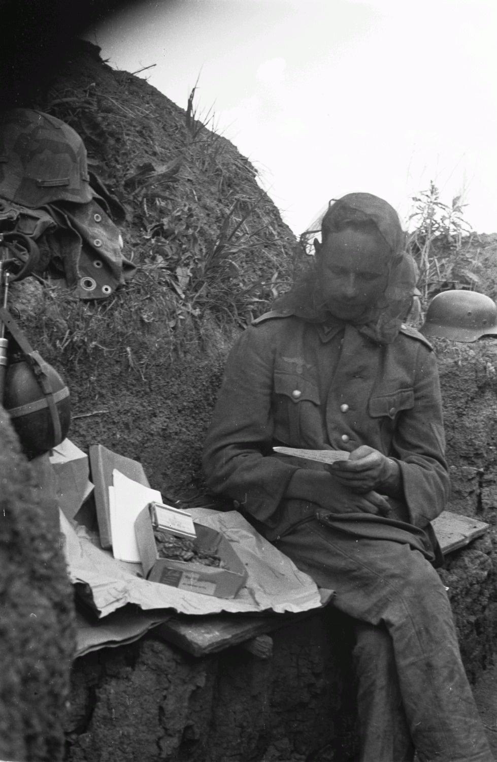 摄影师也是炮灰啊——1943年,二战期间著名的军事摄影师:德国国防军的列兵弗朗茨·格拉瑟,正坐在战壕中阅读家书。大家注意图2,他应该在头上戴了防蚊罩。 格拉瑟隶属第69步兵师,其拍摄的《东线士兵日记》系列现存科布伦茨联邦档案馆。1944年11月,格拉瑟在意大利哥特防线阵亡,时年33岁。