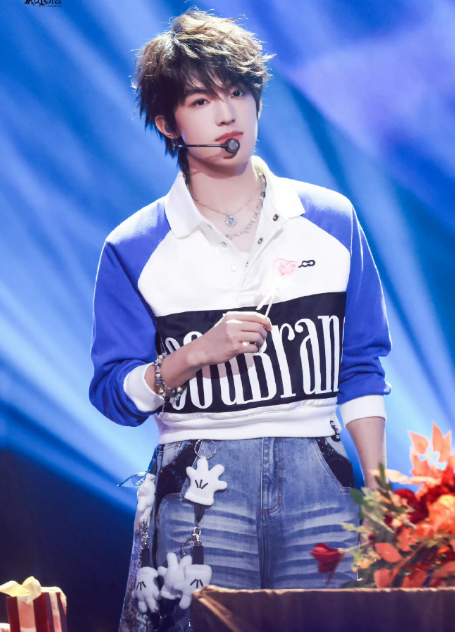 舞台大屏一出来就被震撼到!蓝白玉桂狗造型衬得他少年感爆棚,抬手跳舞时衣摆晃动,大