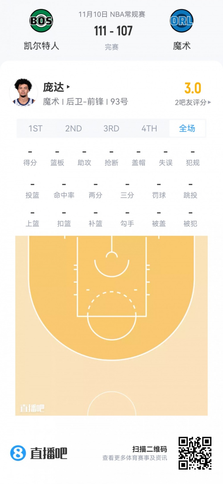 魔术次轮32号秀诺厄·庞达登场10秒钟