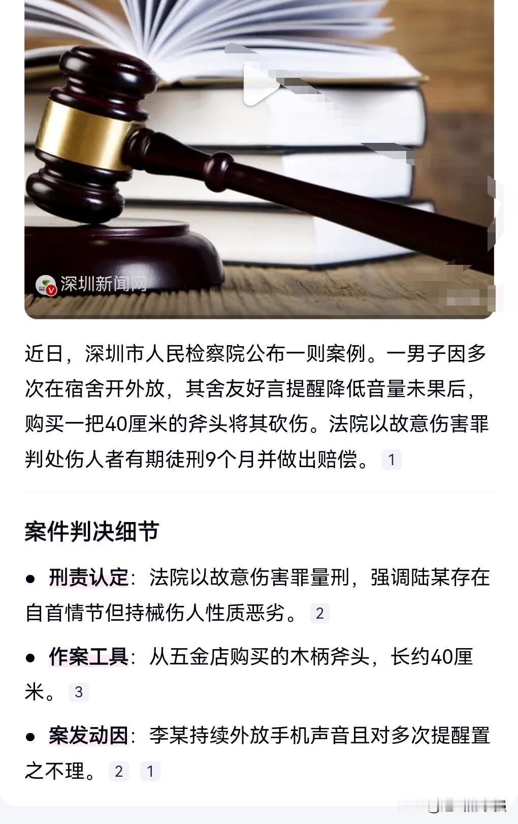 做人不能太缺德,在公共场合或者是像宿舍这样的地方,不能当自己家一样,不能手机声音放的太大,不打扰别人,这是最起码的做人标准。 近日公布这么一起案例,男子因手机外放音量太大被舍友砍伤。 这就是宿舍里面容易发生这样的纷争。 不过砍人那肯定是不对的,那也必须受到法律的制裁。 这外放声音的也够缺德,被提醒了很多次也不改正,结果对方忍无可忍。 这也敲响了警钟。 不要打扰别人,也不能伤人。