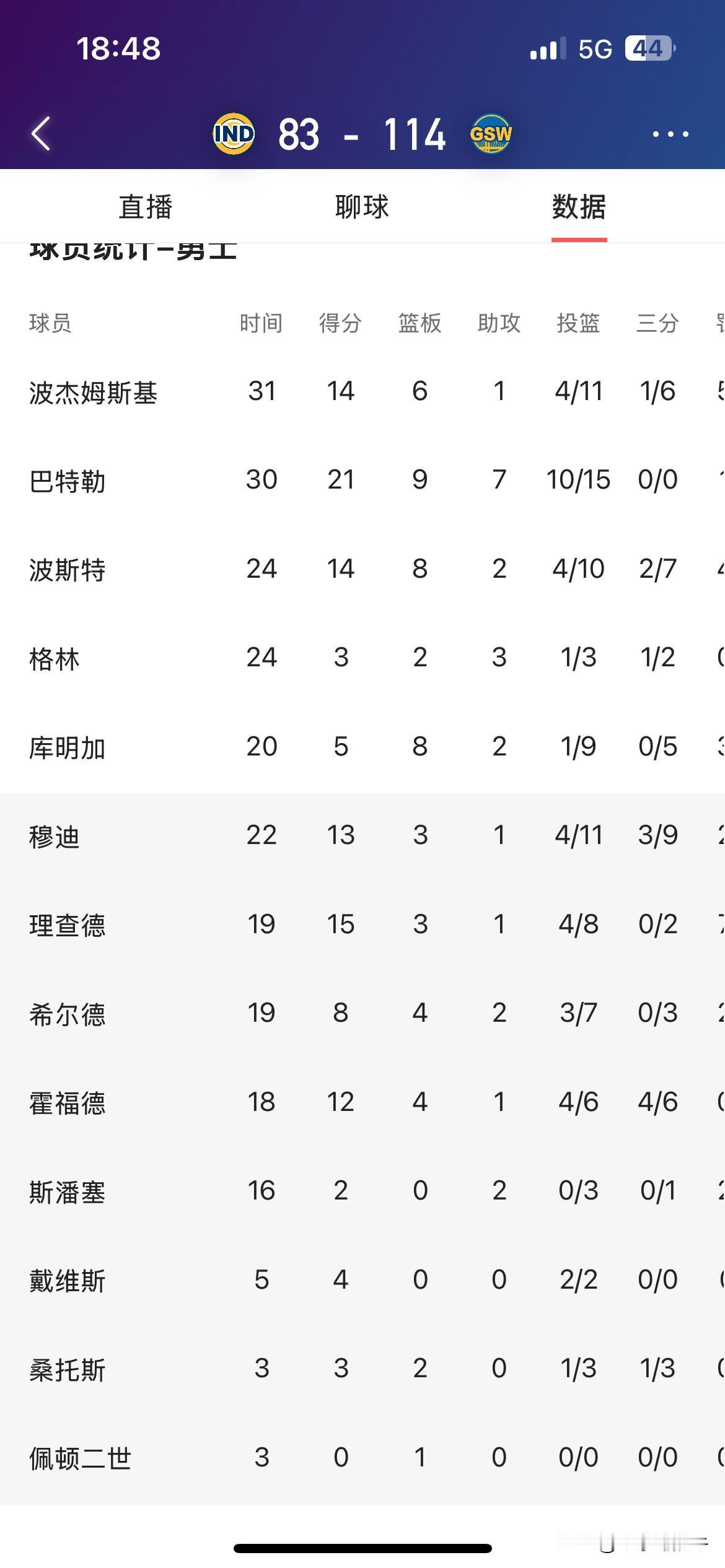 格林:穆迪今天这个球,打得很自信,新赛季进步明显,我们需要这样的队友。 北京时间11月10日这场勇士和步行者的比赛,两队都遭遇连败,而且这场库里、梅尔顿缺席,步行者更是多达9人因伤缺阵。 比赛里穆迪打得超自信,首节格林三分,巴特勒跳投,勇士8 - 2开局,后面步行者反超,霍福德三分稳住局面,穆迪也打进两分。最终勇士114 - 83大胜,终结2连败,赛后评分勇士这边波杰姆斯基等6人得分10+,格林说得没错,球队就需要穆迪这种自信的队友,期待他之后更多亮眼表现。