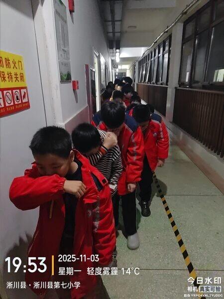 为了使全校住宿学生掌握应急疏散的正确方法,熟悉宿舍紧急疏散的程序和线路,确保在紧急情况来临时,应急疏散能安全、快速、高效、有序地进行,2025年11月3日,淅川县第七小学举行了宿舍夜间应急疏散演练。