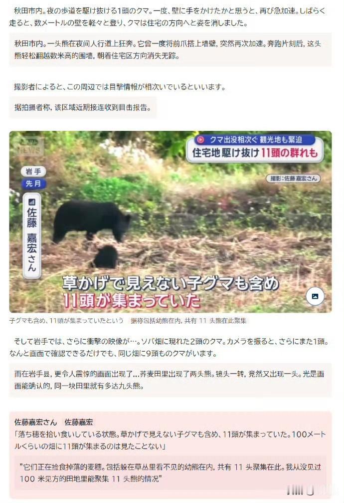 上一条说日本群马县熊肉检出辐射超标。日媒:岩手县100平方米见方的农田里刷新了11只熊。这就是为什么日本网民很慌张:这合理吗?还有,雨中,宫城县住宅区附近的柿子树上刷出了一只熊。日本人想一想都要撅过去了。而这个时候,还有日本动保说:“熊只想在富饶的山林中平静地生活”、“熊熊这么可爱为什么要杀熊熊”