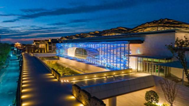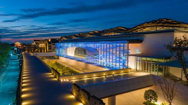 盐官潮城艺术中心作为全球规模最大的专业特大型室内剧场之一,从空中俯瞰,宛如一江潮水,奔涌不止。中心配备三维沉浸声系统和可变的T形舞台,沉浸式的观演氛围可让2752位观众同时享受交响乐带来极致的视听盛宴。