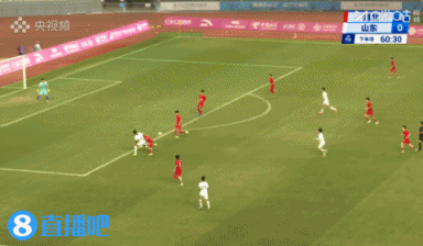 第64分钟,山东右侧角球传入进去,路俊伟头球攻门顶偏。↓