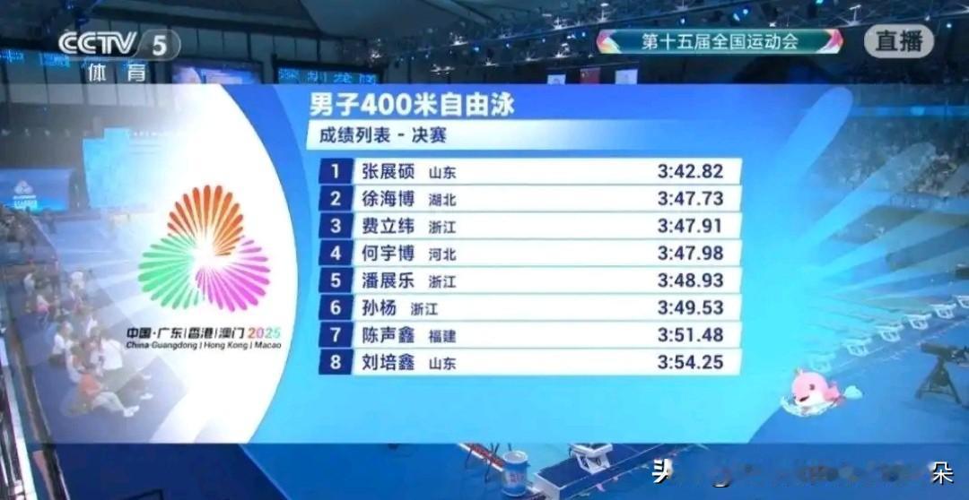 18岁黑马横空出世!张展硕3分42秒82逆袭夺冠,潘展乐孙杨遗憾无缘领奖台 11月10日晚,第十五届全运会游泳赛场迎来历史性时刻!18岁山东小将张展硕在男子400米自由泳决赛中一骑绝尘,以3分42秒82的惊人成绩打破世界青年纪录,强势摘得本届全运会游泳首金!这场“新老对决”中,奥运冠军潘展乐前半程领跑后崩盘,名将孙杨虽拼尽全力仍无缘奖牌,而张展硕的横空出世,彻底点燃了全运会游泳赛事的激情。 比赛直击:后程狂飙,黑马逆袭 - 战术碾压:决赛中,张展硕从第5泳道出发,前200米稳扎稳打,后半程突然爆发,划频与耐力全面占优,最终以4秒91的巨大优势力压湖北选手徐海博(银牌3分47.73秒)和浙江选手费立纬(铜牌3分47.91秒)夺冠。 - 名将遗憾:奥运冠军潘展乐前100米一度领先,但后程体能下滑,最终仅获第5名(3分48.93秒);34岁老将孙杨则以第6名(3分49.53秒)收官,虽未能突破个人亚洲纪录(3分40.14秒),但全场观众仍为其送上热烈掌声。 新星崛起:从世锦赛到奥运,未来可期 - 天赋+努力:2007年出生的张展硕是青岛市羽毛球游泳运动管理中心培养的新星,2024年随中国接力队斩获世锦赛男子4×100米、4×200米自由泳两枚金牌,并在巴黎奥运会4×200米接力中拼至第四名。 - 突破极限:今年全国锦标赛上,他以3分49.92秒刷新个人最佳,位列中国男子400自历史第三(仅次于孙杨、张琳)。此番全运会,他再次刷新自我,将成绩提升至3分42秒级,成为国内中长距离自由泳新一代领军人物。 老将坚守:孙杨潘展乐的“最后一舞”? - 孙杨的坚持:作为上届全运会6金得主,34岁的孙杨赛前坦言“每一场比赛都是告别”。预赛中他以3分52.90秒惊险晋级,决赛中虽落后但全程无保留,用行动诠释职业精神。 - 潘展乐的起伏:奥运冠军潘展乐今年状态起伏,世锦赛100自、200自接连失利,全运会虽展现复苏势头(预赛第5),但400自决赛后程乏力暴露短板,未来需调整节奏。 全运会游泳看点延续 本届全运会游泳赛事首日即诞生多项纪录,后续还将上演男子200米自由泳、接力赛等激烈角逐。张展硕能否延续黑马本色?潘展乐、孙杨会否调整状态再战?让我们拭目以待! 网友热议: “18岁就破世青纪录,张展硕未来绝对要统治泳坛!” “孙杨虽败犹荣,老将的坚持比金牌更珍贵!” “潘展乐还需突破,别让天赋埋没!” 全运会游泳 张展硕破纪录 孙杨潘展乐 (综合自:央视体育、新华社、中国体育报)