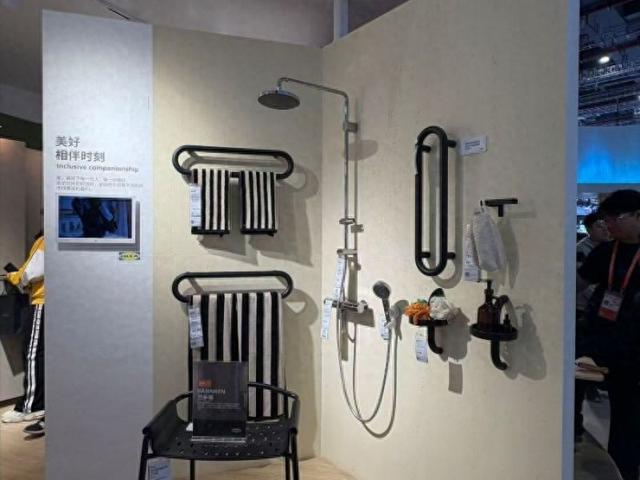 在宜家展厅,前来体验咨询的观众排起了长队。记者看到,来自瑞典的宜家为“银发族”设计了6个分区,涵盖浴室、厨房、客厅和起居室。其中,代表产品BÄSINGEN(巴辛根系列)打造的浴室空间,淋浴椅和台阶凳配有扶手,防滑安心,长辈、儿童均适用;毛巾架、淋浴收纳架也安装在适合长辈取用的高度等,细节处尽显人文关怀。