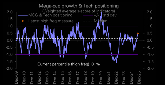 德银数据进一步证实了这一趋势。大型成长股和科技股的持仓水平重新回到多季度高点,显示资金大量涌入这一领域。