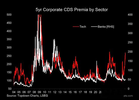 最后,信贷风险指标出现分化。科技行业的信贷风险急剧上升,而银行业相对平静。尽管存在特定原因,且不能简单套用“信贷总是领先”的规律,但这一现象仍需密切关注。