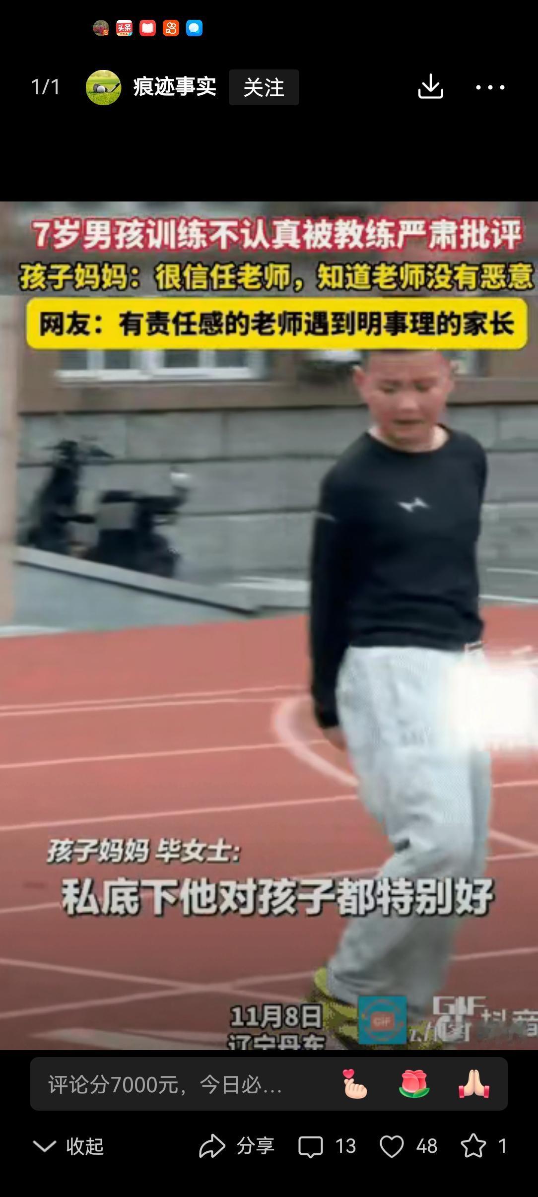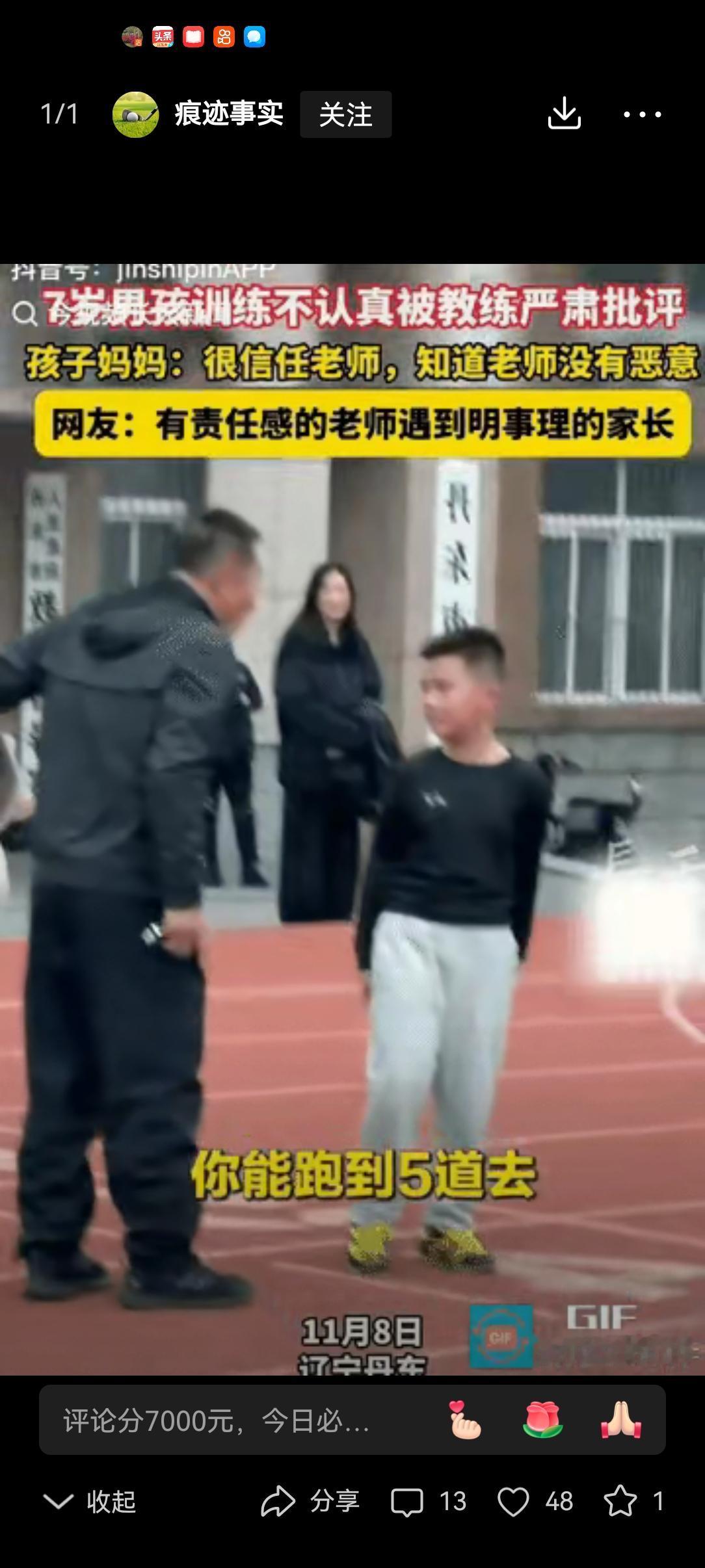 7岁男孩在训练场上调皮捣蛋,被老师踹了好几脚,男孩委屈地望着老师哭了起来。男孩妈妈恰巧看到这一幕,令人意外的是,她不仅没有发怒,反而面露笑容,只因她十分信任老师,清楚老师并无恶意。 谁能想到,7岁娃在训练场撒野,被老师踹了好几脚,哭着抹眼泪时,亲妈就站在不远处? 更让人意外的是,这位妈妈没冲上去护犊子,反倒嘴角带笑,静静看着。旁人问起,她只说:“老师肯管,是孩子的福气,哪能怪人家。” 这事传到网上,吵得不可开交。有人说这妈妈心大,换自己早炸了;也有人说,这才是清醒家长。 80后90后大多是被老师“收拾”着长大的,那时家长常说“老师尽管管,打轻了我还不乐意”。现在倒好,老师批评两句都怕被告状。 孩子天性顽劣,训练场本就讲纪律,撒野胡闹不仅自己危险,还影响别人。老师若睁一只眼闭一只眼,才是真的不负责任。 当然,管教不是打骂,得有分寸、无恶意。但反过来想,老师若前怕狼后怕虎,连管都不敢管,孩子的规矩又从何而来? 家长的信任,是老师敢管的底气。严师未必出高徒,但放任不管,大概率养出“熊孩子”。 道理其实很简单:老师愿管,家长肯信,孩子才能长记性、明是非。你认同这位妈妈的做法吗?