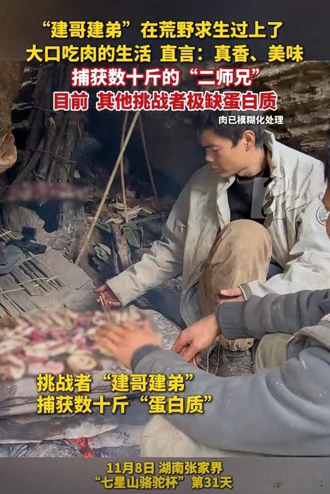 荒野求生33天!冷美人快扛不住了?赛事总策划断言“她最不可能夺冠”,可我却想为她的坚持说句公道话 一把柴刀开局,在无人荒野里熬够33天——这不是闹着玩儿的生存竞赛,可今年的选手一个比一个“卷”:蜜蜂哥不仅搭起结实的庇护所,还囤下了猕猴桃、野梨,甚至收集蚂蚁做成蛋白质储备,够安安稳稳躺吃一个多月;建哥建弟更是野外生存老手,每一步都规划得明明白白,展现出的适应力和意志力让人叹服。 唯独“冷美人”,成了赛场上最让人揪心的存在。和其他高手比起来,她的生存方式简单得近乎“原始”:会生火取暖,饿了就漫山遍野找虫子、挖蘑菇,除此之外,没有任何存粮。别人能躲在庇护所里避雨,她却不行——雨天也得冒着凉气出门找吃的,不然就只能饿肚子。有网友无奈吐槽:“别人的屯粮够躺10天,她连一顿安稳饭都吃不上,这拿什么比啊?生存游戏,光有意志力和热血真的不够,得有实实在在的吃的才行。” 更扎心的是,赛事总策划在采访中直言:“所有选手里,她是最不可能夺冠的那个。”这话像一盆冷水,浇在不少心疼她的观众心上。直到记者翻山越岭找到她时,镜头里的画面让人心头一紧:冷美人全身湿透,头发黏在脸颊上,正蹲在微弱的火堆旁瑟瑟发抖,双手反复搓着取暖,连烤火的动作都透着一股疲惫。。。 有人忍不住发问:“作为女人,本来在体力、爆发力上就比不过男人,这么硬扛下去,真的有意义吗?”可我却觉得,这场生存游戏的输赢,从来不该只用量化的“存粮多少”来定义。有数据显示,在全球各类荒野求生赛事中,女性选手的坚持时长平均比男性短17%,但她们在资源利用、风险规避上的生存智慧,以及面对绝境时的韧性,却常常被低估。 冷美人没有囤粮的本事,却凭着一股劲儿在荒野里活了33天;她没有男性选手的体力优势,却能学会生火、识别可食用的虫菇,在雨天里也不放弃寻找食物。这些看似“笨拙”的坚持,不正是生存意志的体现吗?生存的本质是“活下去”,但活下去的方式从来不止一种——有人靠囤货稳扎稳打,也有人靠韧性步步为营。 或许她真的拿不到冠军,或许下一秒就会选择退出,但这33天里,她每一次找到食物后的喘息,每一次生火成功后的欣慰,每一次在雨天里咬牙前行的脚步,都比“夺冠”两个字更有力量。毕竟,不是每个人都有勇气走进荒野,更不是每个人都能在明知“大概率输”的情况下,还坚持了33天。 这场生存赛,赢的是强者,可坚持下来的,都是勇士。你们觉得,冷美人的坚持有意义吗?欢迎评论区聊聊你的看法!荒野求生女选手 丛林荒野求生