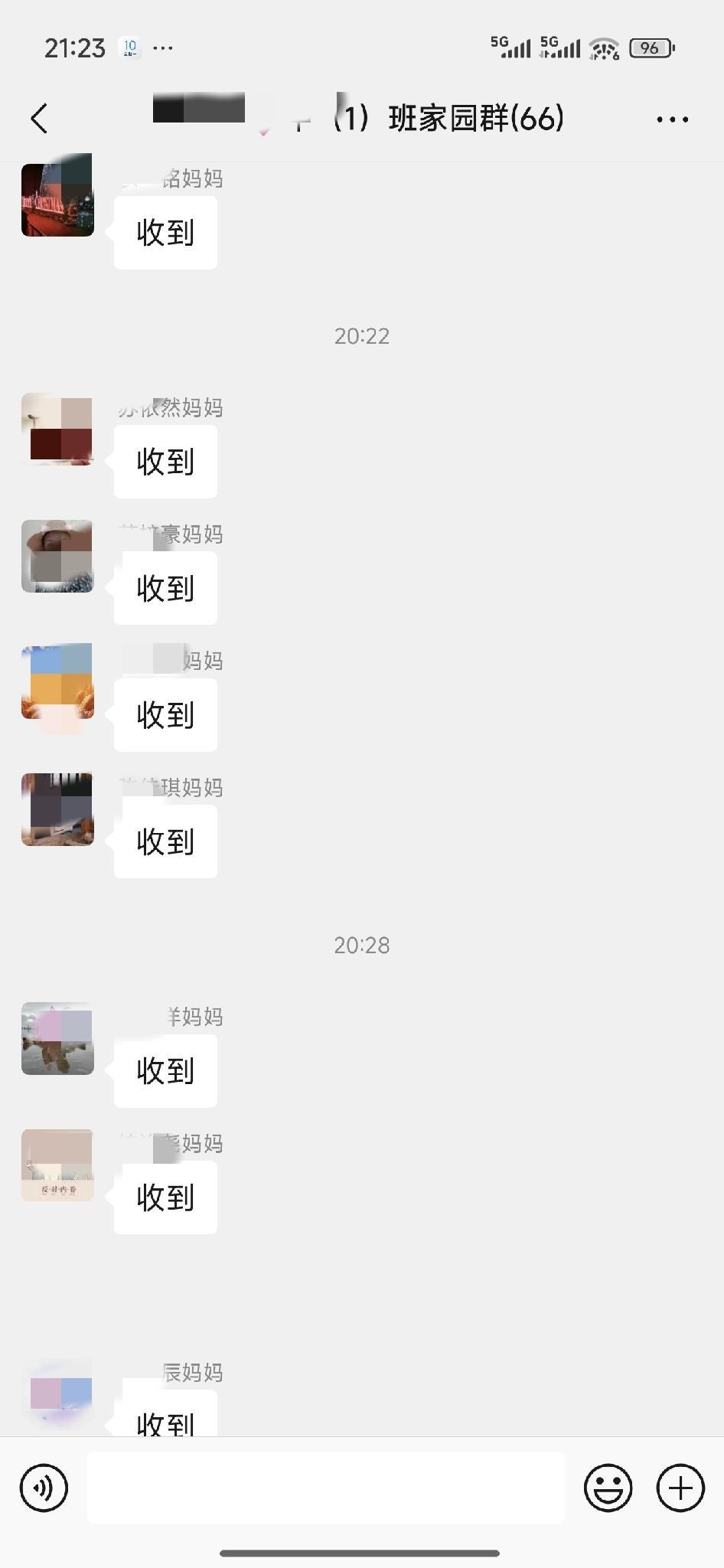 今天二宝幼儿园老师发的幼儿园明天秋游的现在,清一色的妈妈在回复。我发现一个问题,不管是小学群,还是幼儿园的群,在里面说话、回复消息的,绝大多数都是各位妈妈,爸爸很少有消息。什么原因呢?可能是爸爸普遍比较忙,没时间看群消息,也可能是大部分爸爸都相对腼腆,在群里放不开。还有一个可能,很多爸爸认为很多信息都是小事,没必要一个一个回复,一个个在群里轰炸还会干扰到别人?