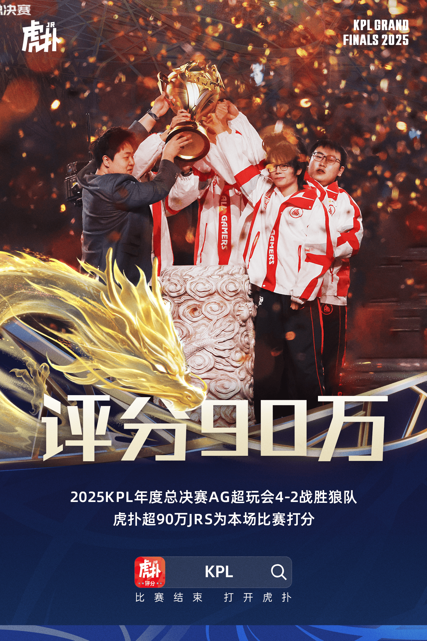 赛后累计超90万JRs为本场比赛打分,创造虎扑王者荣耀评分单场最高纪录!