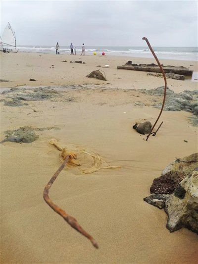 时隔2个来月,林女士再次带孩子到该片海滩游玩时,发现海滩已经“面目全非”。“海滩上有很多垃圾,而且冒出来好多石块,有的很锋利。还有一些钢筋、木桩裸露着,万一有小朋友光脚踩到可能就受伤了。”林女士说,她怀疑是附近工地将建筑垃圾运来倾倒在海滩上,不但破坏了美景,也带来了安全隐患,让人痛心。