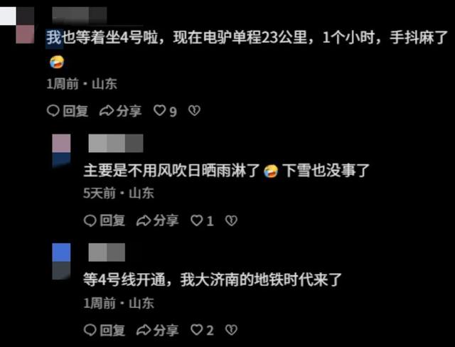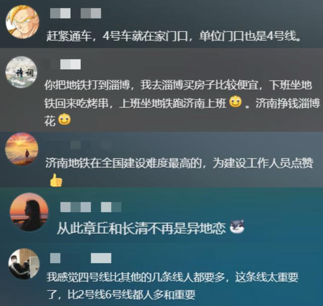 目前,济南地铁4号线已全面进入开通前的最后冲刺阶段,全线机电安装进度已达98.5%,车站装饰装修完成95%,道路恢复及绿地恢复也在全力推进,确保年底前高标准高质量开通运营。网友对4号线的开通纷纷表示期待:“大济南的地铁时代来了”“不用风吹雨淋日晒了”“从此章丘和长清不再是异地恋”。
