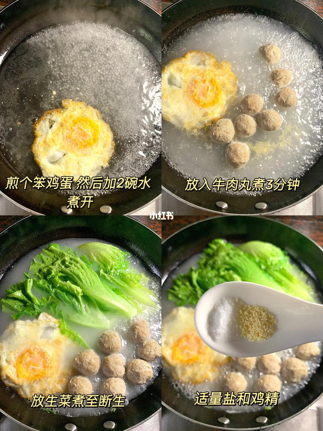 不用熬高汤也超鲜甜,满屋飘香的那种! ✅食材:牛肉丸,鸡蛋,生菜 [飞吻R]做法:少许油煎一个荷包蛋 加适量水煮开 放入牛肉丸煮3分钟 放入生菜煮至断生 最后少许盐和鸡精 胡椒粉调味即可✅ 真心推荐给姐妹们试试!