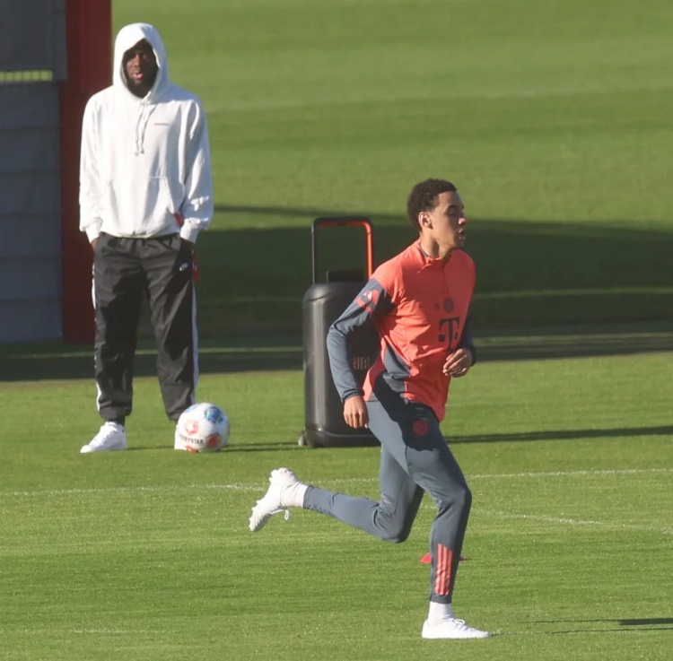 值得一提的是,好友阿方索·戴维斯(25岁/7个半月前右膝十字韧带撕裂)在训练课开始后不久便身着休闲服来到训练场。这位加拿大国脚随着穆西亚拉用手机连放的XXL音响中说唱乐节奏舞动,并为正在进行恢复训练的伙伴欢呼助威。这位左后卫情绪高涨,强劲的节拍响彻拜仁训练基地。