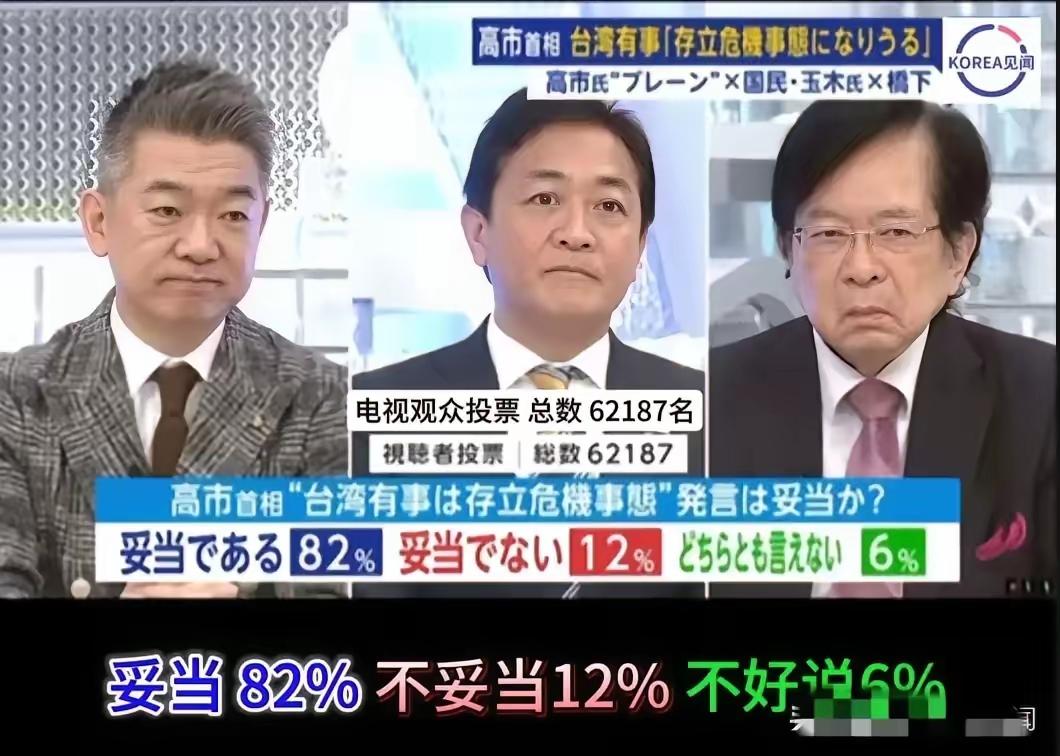这个投票问题,像一把手术刀,切开了中日两国舆论场的真实肌理。日本80%的支持率,是温水煮青蛙,是对危险的无知或默许。他们把干涉他国内政包装成“正当防卫”,这种集体性的认知错位,比个别人的极端言论更可怕。 而中国这边,如果真投票,支持率恐怕远不止90%。这不是嗜血,而是被逼到墙角的应激反应。高市早苗的言论,等于在中国家门口磨刀,薛剑总领事的“砍头”回应,是抄起了门后的棍子。一个在挑衅,一个在警告。 日本民众看到的是“言论妥当”,中国人看到的是“生存威胁”。这根本不在一个频道上。这场舆论对撞,暴露的不是谁更激进,而是两国在核心利益问题上,已经没有模糊地带。日本以为自己在玩一场地缘政治游戏,而中国人,已经把它当成了家门口的生死对决。这种认知鸿沟,比任何导弹都更危险。