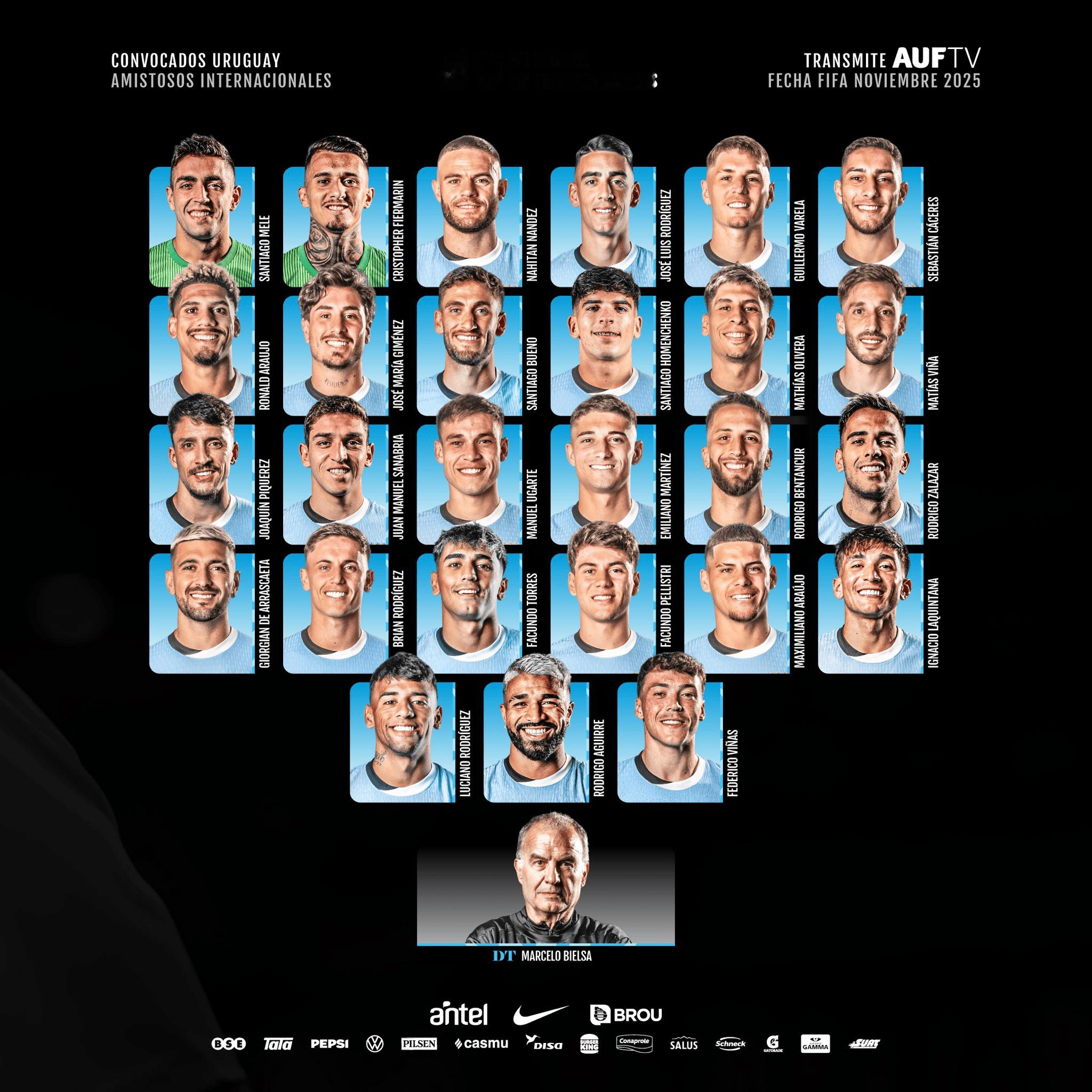 虎扑11月11日讯乌拉圭足协公布11月国家队比赛日大名单:阿劳霍、乌特加、本坦库尔等在列,巴尔韦德缺席。