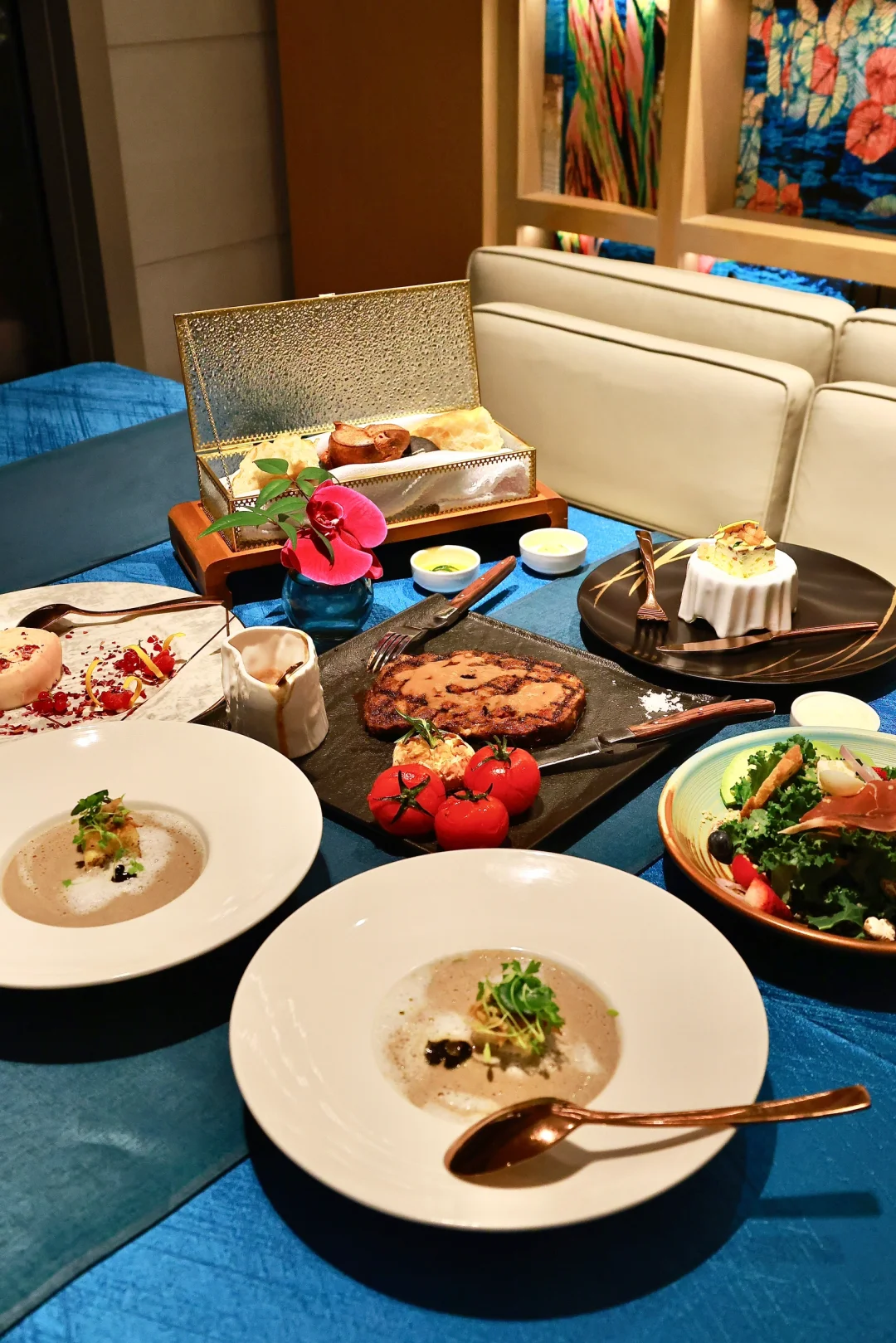 晚餐的地方浪漫,自带氛围,套餐一整个爱住,仪式感拉满,从餐前的面包到主食的牛排,每一道都在我心巴上,牛排🥩烤得里嫩外焦,浇上酱汁,鲜美无比,两款甜点,造型独特,颜值暴击,甜而不腻
