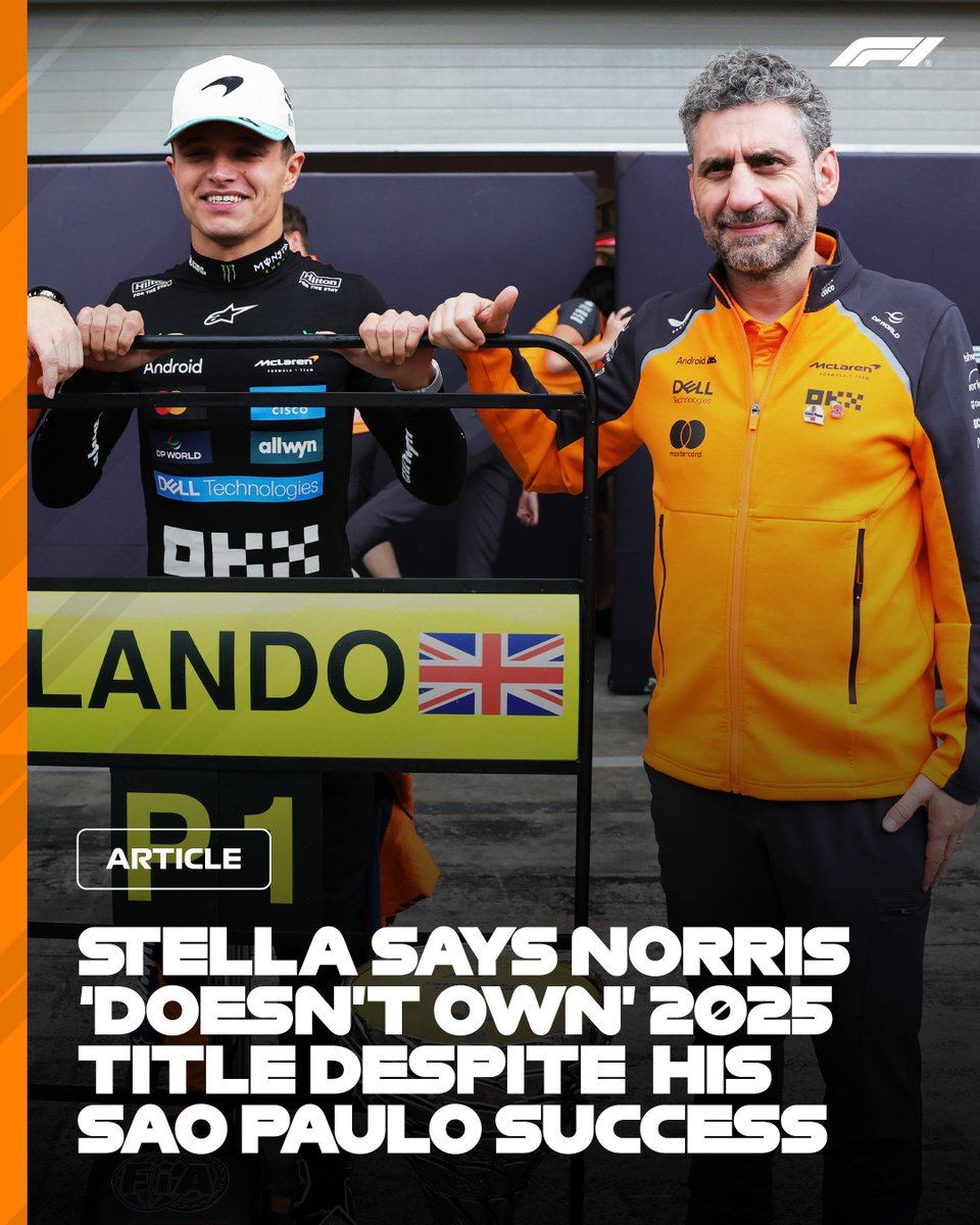 F1官方推特账号报道。迈凯伦车队负责人安德烈亚·斯特拉表示,兰多·诺里斯在巴西大奖赛的胜利尚未确保他获得总冠军头衔⬇#F1#BrazilGP