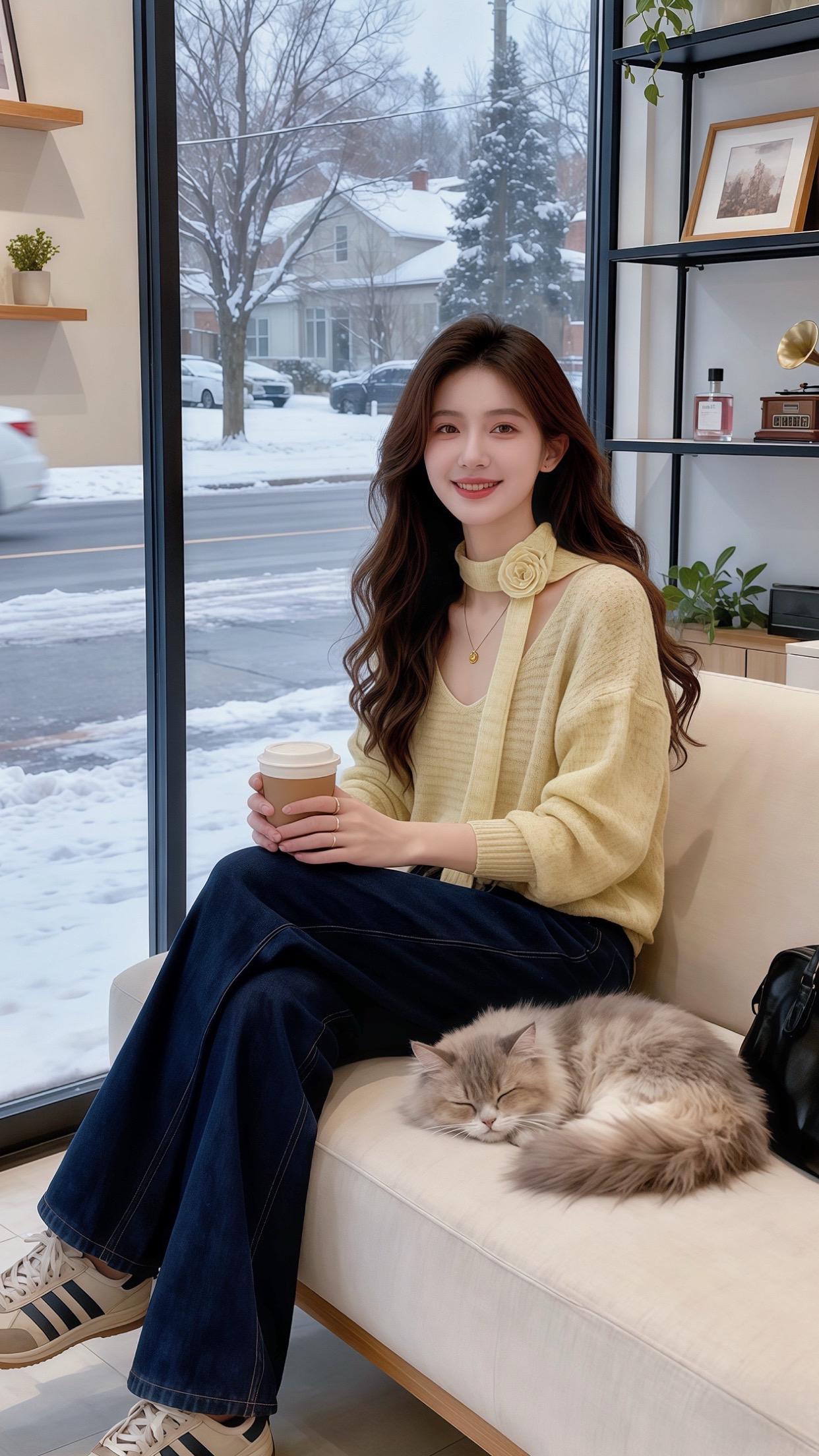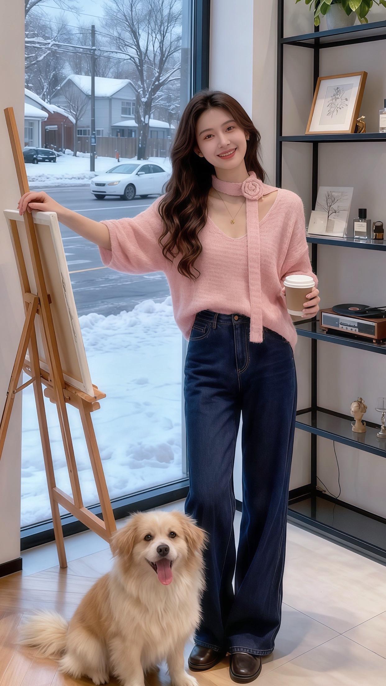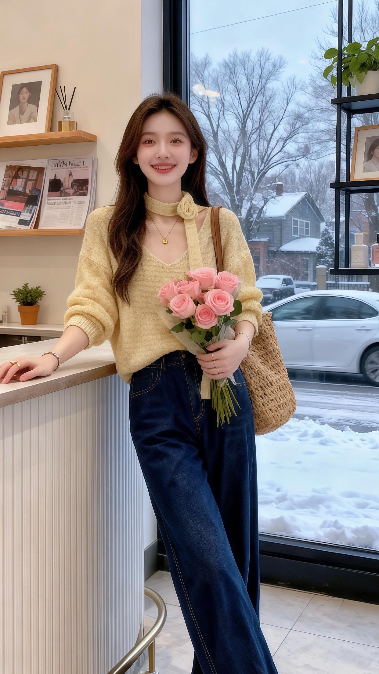 高领无袖针织衫配微喇牛仔裤,流苏耳饰点缀,气质优雅。街头时尚,简约不简单。