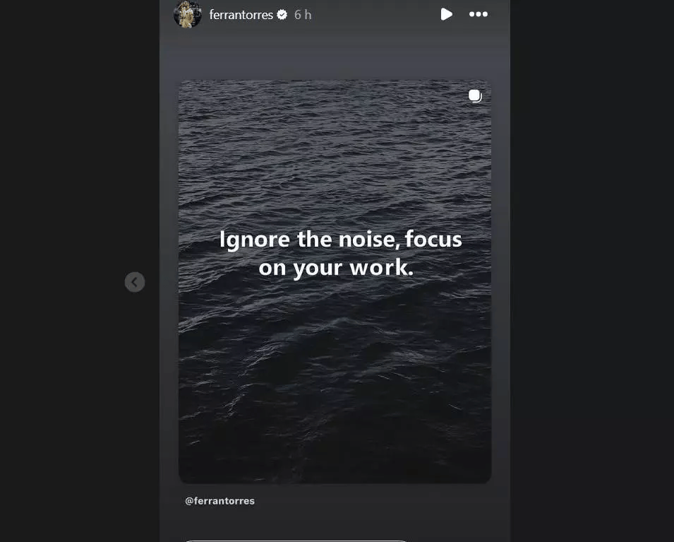 虎扑11月11日讯费兰-托雷斯在他的Instagram账号上发布了一条动态,传达了一个明确的信息:"忽略噪音,专注于你的工作"。这句话简短但意味深长,许多人将其解读为是对围绕他的批评或评论进行的回应。