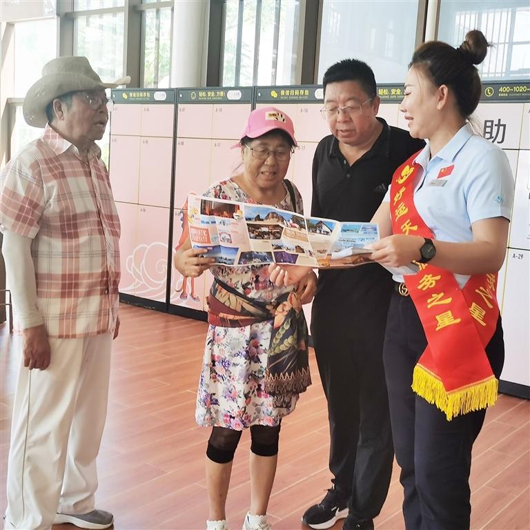 在天涯海角游览区工作22年的验票员黎克史介绍,他曾在春节期间帮助一位与家人走散且患有心脏病的七旬老人。在他的耐心安抚和热心协助下,老人很快找到了家人。“每一位一线员工都是天涯海角的一块招牌,我们要用行动让游客感受到温馨和周到。”黎克史说。