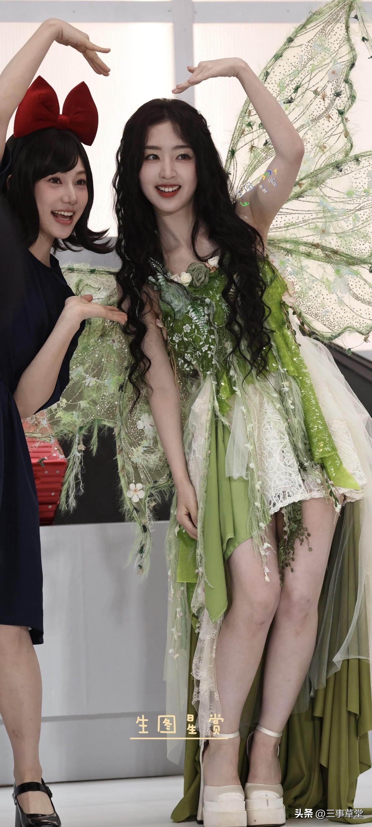 邓恩熙好六夜红毯 蝴蝶小精灵,绿意朝气活力