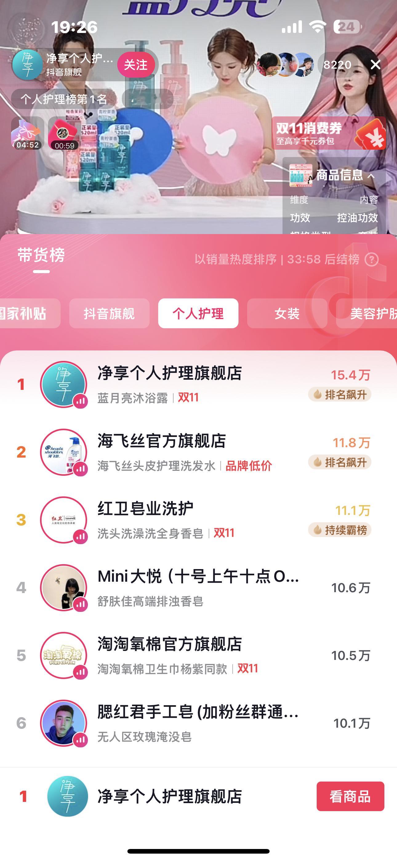 今晚直播个人护理带货榜第一☝️不愧是我们超越啊!