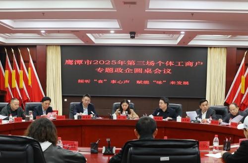 11月5日,鹰潭市2025年第三场个体工商户专题政企圆桌会议在余江召开,会议以“倾听‘食’事心声,赋能‘味’来发展”为主题,市政府副市长万玲出席会议并讲话。会议由市政府副秘书长项亚波主持。市市场监管局党组书记、局长邵志国,余江区政府党组成员汪华明,市公安局、市发改委、市工商联、市人社局、市城管局、市农粮局、市商务局、市文广旅局、省特检院鹰潭检测分院、国网电力鹰潭供电分公司、余江区等有关部门负责同志及30位个体工商户代表参会。