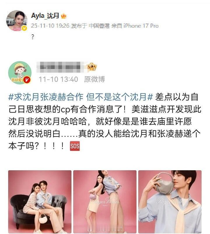 11月10日,邱淑贞女儿沈月和张凌赫早期合作的广告片被考古,话题求沈月张凌赫合作 但不是这个沈月 登上热搜。对此,沈月发“?”后秒删。