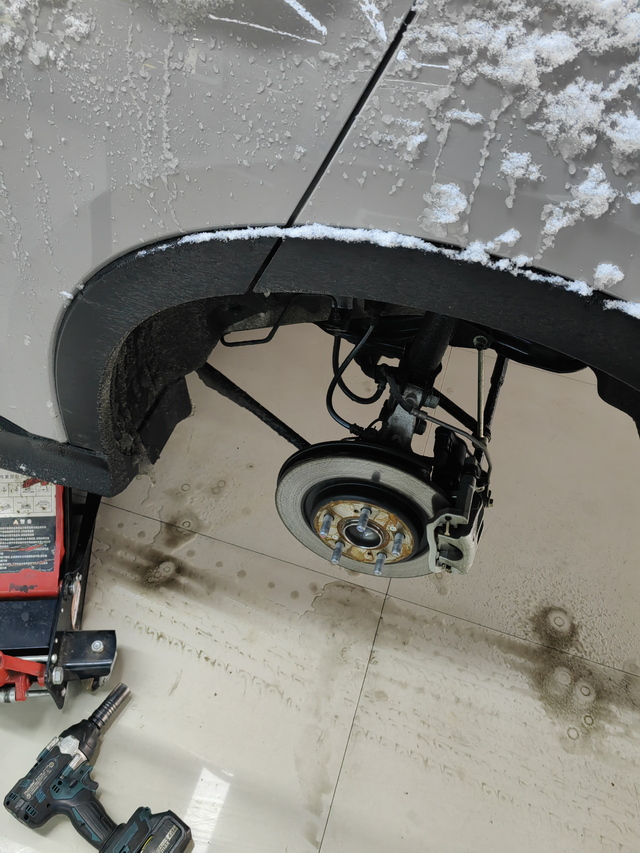 车胎被扎了,终于近距离直观感受到了悬架 这悬架看的有点小胆颤,另外车胎两个钉子,一个直扎洞大,一个斜着扎洞小,师傅建议一个磨补丁补胎,一个普通补胎,80+60,140干下去了,这个价格感觉小贵