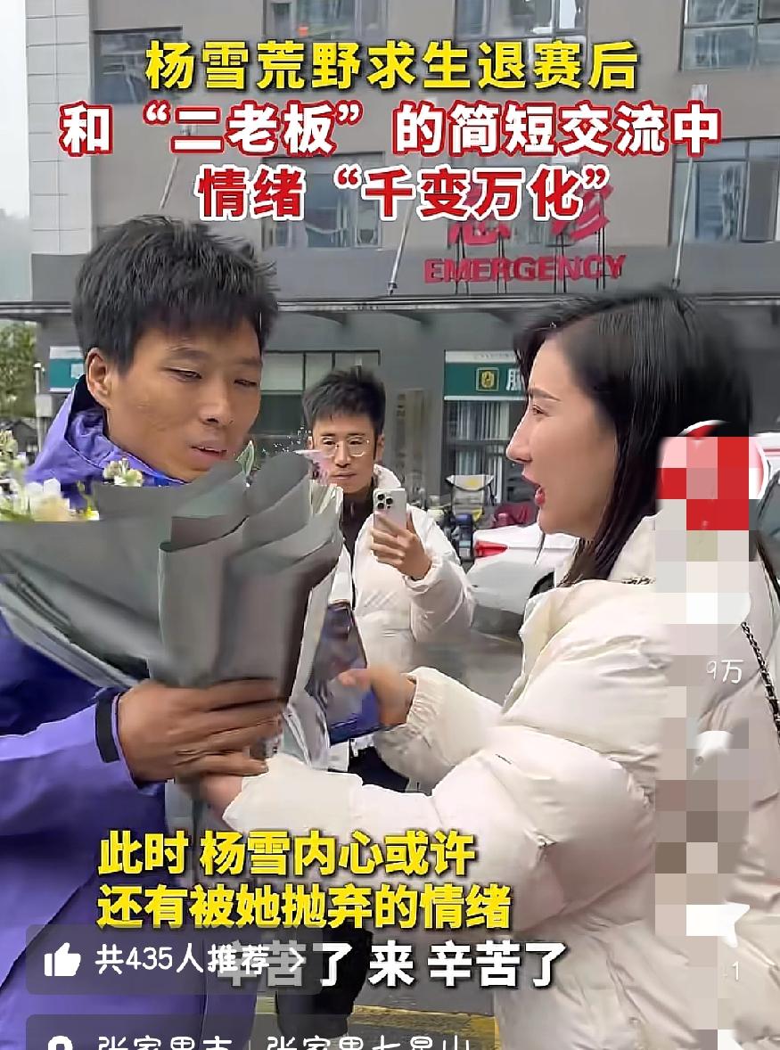 荒野求生第一深情 他们二人再相聚 温暖了多少网友的心?杨雪退赛后,刚开始面对镜头还很虚弱,看到二老板后立马笑开了花,之后又感动,网友都盯着他的情绪来回猜。 杨雪在历经32天的荒野挑战后,宣布退出,这得下多大的决心呀?镜头前的情绪起落,那是千变万化,分明是熬到极限之后的紧绷,退赛后的慌乱,看到镜头不得不端着的体面,更是见到友人的感动。 事后他跟二老板一起进行了体检,瘦的血管都看不出,二老板直呼心疼,并且说经历荒野求生的人都不容易,希望大家多一些包容,少一些恶意。 我们现在要做的就是,别把狼狈当热闹看,多释放点善意给这些普通人。希望接下来他们都能够笑着面对生活,面对工作。 如果是你参加完这么高强度的历练,回去之后最想干的第1件事是什么?荒野求生女选手 荒野求生 包容