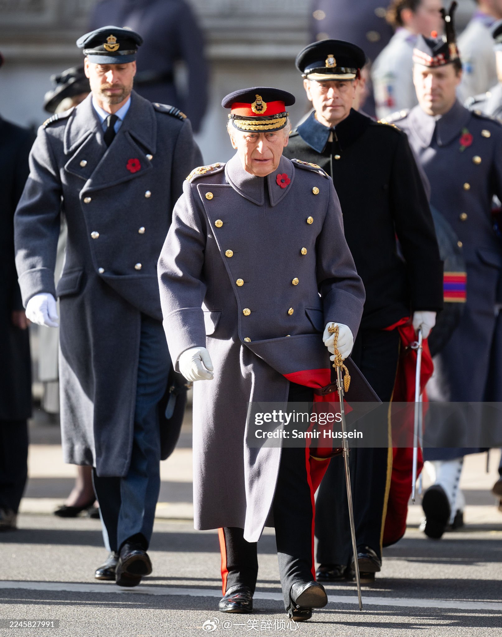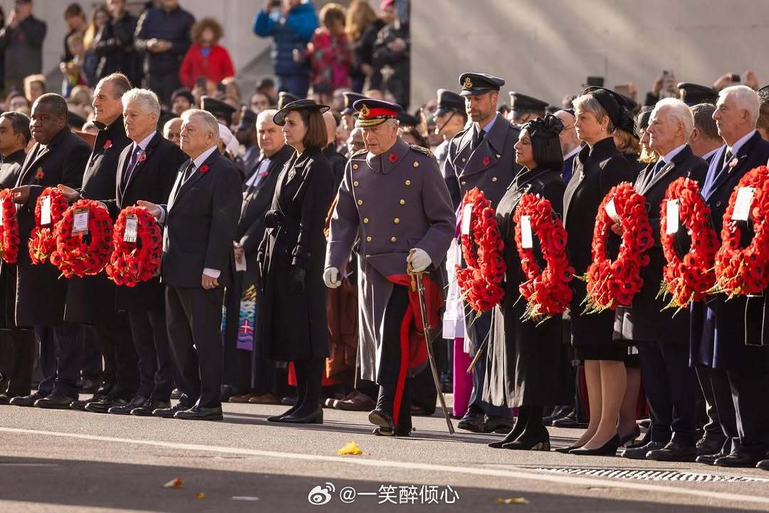 2025年11月9日,正值阵亡将士纪念月期间,查尔斯三世率领威廉王储和爱丁堡公爵爱德华王子在白厅纪念碑面前敬献花圈🌺安妮长公主人在澳大利亚未归,但有派她的副私人秘书去献花圈。