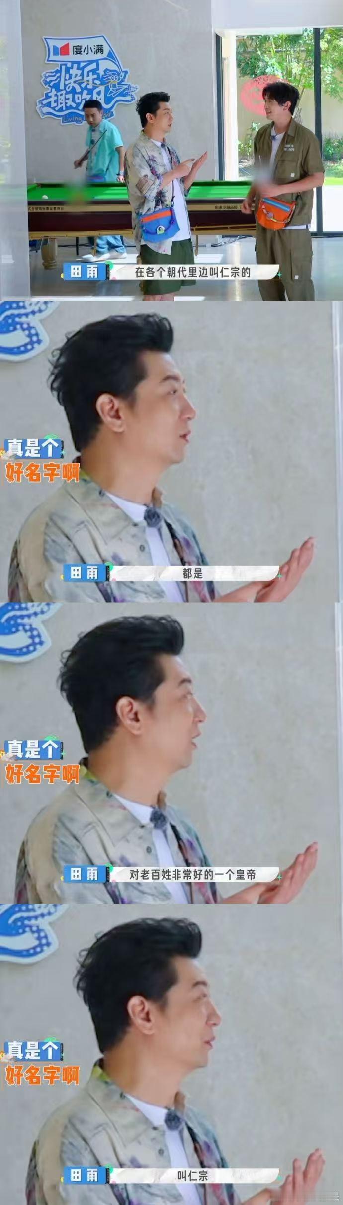 田雨以为颜人中叫仁宗 田雨:这名字有历史感!把颜人中叫“仁宗”,讲皇帝讲到兴头,被纠正穴位“人中”,当场石化后拉长人中,笑不活了家人们~