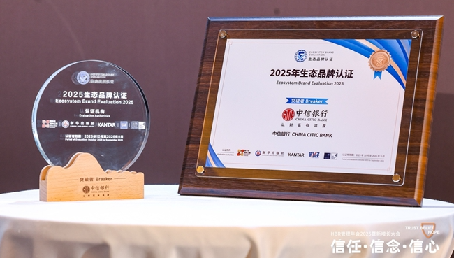 本次生态品牌认证由新华社品牌工作办公室、新华出版社、凯度集团、《财经》杂志、牛津大学赛德商学院等权威机构联合发起,覆盖全球30余个行业的近千个品牌。中信银行在“用户体验交互、开放协同共创、社会价值贡献”等维度表现卓越,持续在生态品牌发展体系中领跑金融行业。《生态品牌发展报告(2025)》收录中信银行三大案例,为银行业树立了可持续、生态化的品牌建设标杆。