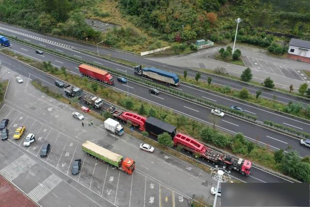 石阡和余庆两地执法人员进行工作交接后,当日14时50分,超限运输车辆正式进入S30江黔高速余庆段。执法人员与交警按计划有序配合,实时引导车流、监测路况,并对车速进行精准控制。在途经桥梁、弯道、坡道等关键风险节点时,监管小组进一步加强了现场预警与交通疏导,有效防范了可能出现的交通安全风险。当车辆行至余庆服务区路段时,为缓解后方积压车辆,护航组立即引导超限车辆临时进入服务区,放行后续社会车辆,有效避免了路段长时间拥堵。历经数小时的紧密协作,该电抗器最终被安全移交至下一路段管辖单位,标志着此次护航任务圆满完成。