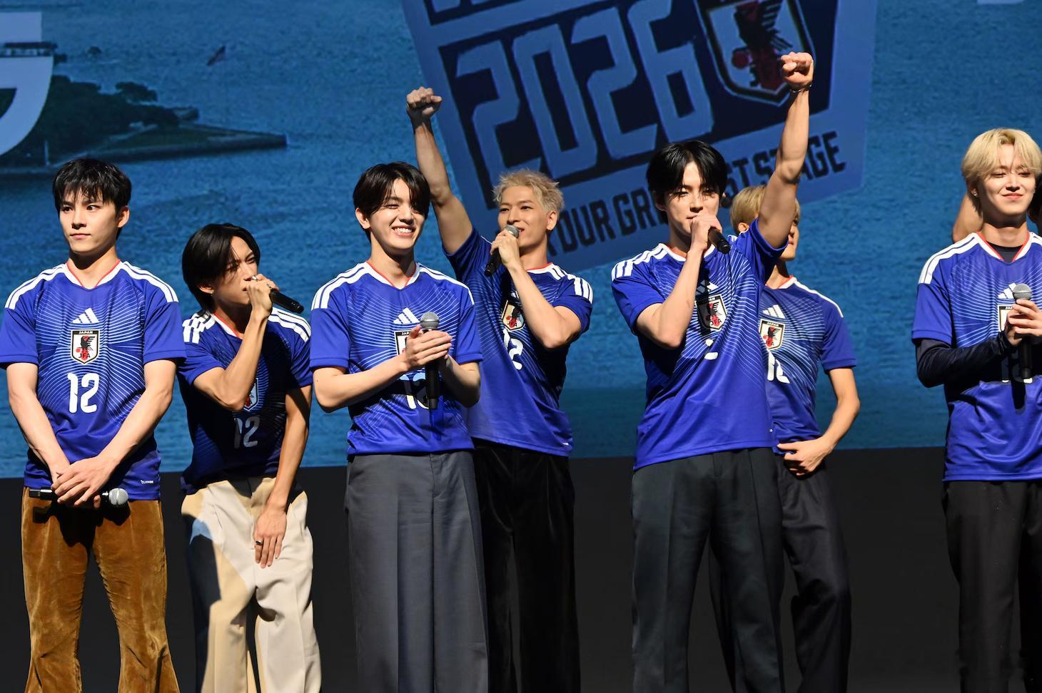 JO1的与那城奖、白岩瑠姬、河野纯喜、佐藤景瑚、川西拓实、金城碧海,以及INI的西洸人、田岛将吾、高冢大梦、后藤威尊、佐野雄大、池崎理人,以特别组合JI BLUE的身份,就任日本国家足球队“见证2026最佳时刻”官方大使。